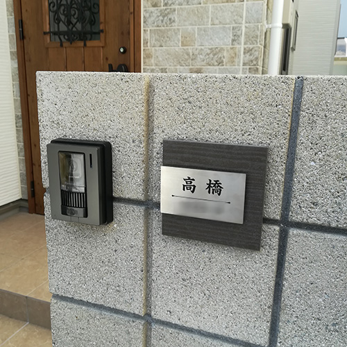 レンガ調の外壁とレトロな木の扉がとっても素敵な玄関に、 Moule(ムウル) のベースカラーチョコを非常にバランス良く飾っていただいていますね(^^)