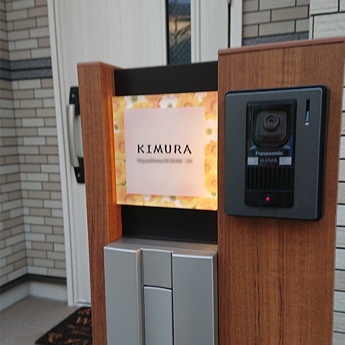 おしゃれな玄関を華やかに飾る、まるで写真立てのような表札 プライ をお選びいただき、素敵に飾っていただきました。