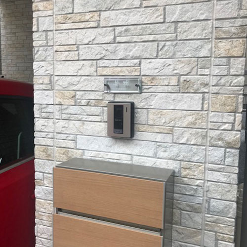 表札を取り付けていただいた、壁もとてもオシャレなので、家造りのこだわりがとても感じられます。