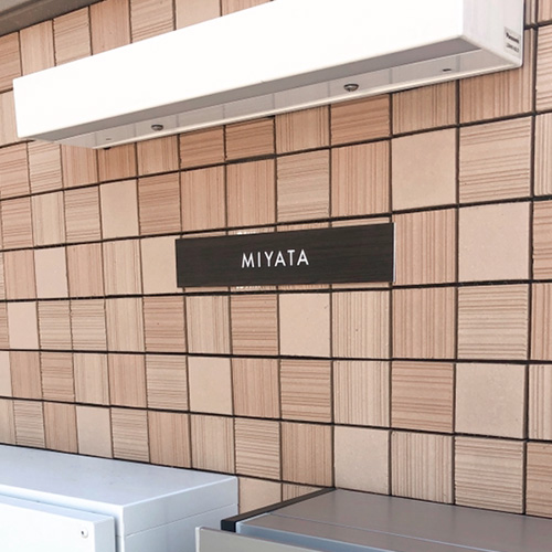 ローマ字書体はフーツラ体で、ベースは木目調と、とてもクールな印象にしあがりました。