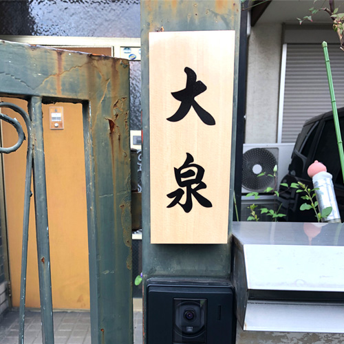 ヒノキの「表札 Komorebi(コモレビ) 」に風格のある「書き文字」が、落ち着いた日本家屋とも相性ぴったりで、とても素敵です。