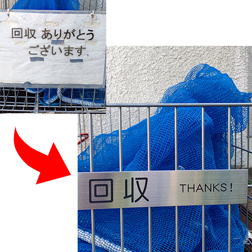 ゴミ回収用のメッセージプレートとしてご利用とのことで、感謝のメッセージ素敵ですね。