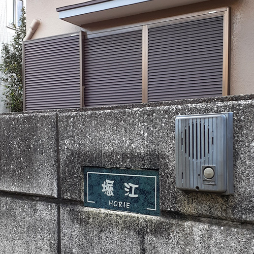 新築の際に取り付けた重い御影石の表札が自然落下したので、軽いステンレス製にしました。