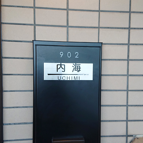 シンプルになりがちなマンションの玄関ですが、書体を「丸ゴシック体」にして頂いた事で、見事に存在感のあるこだわりの表札が完成しましたね。
