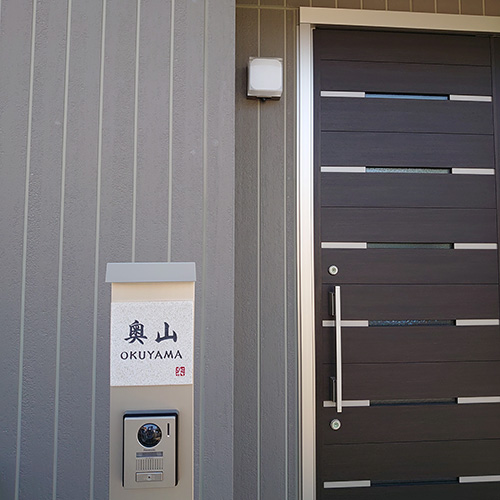 屋外で永く使うものですので、経年変化に強そうな焼き物素材の表札をお願いしました。
