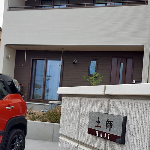 門柱に付けるため完成に時間がかかりましたが、やっと表札をはりつけることができました!