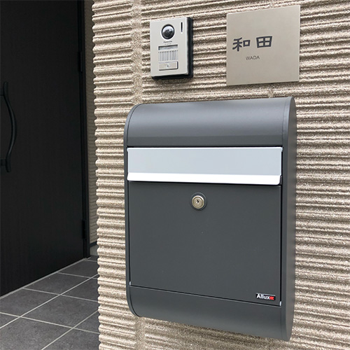 シンプルな「チタン」に、視認性の高い「隷書体」と優しい「丸ゴシック体」の書体が、とても上品な雰囲気の表札に仕上がっていて素敵です。