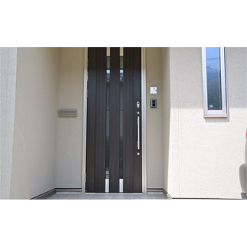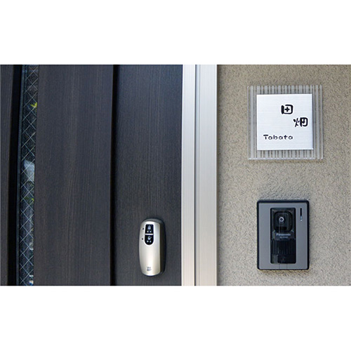 取り付け位置がすこし狭かったため、別寸可能なデザインのものを選択し、標準サイズより小さく(1センチ)したもので、作成依頼させていただきました。文字色は 「こげ茶」にし、玄関ドアの色と合わせました。ベースのデザインは、「格子」をイメージした「線」でお願いしました。お願いしてよかったと思います。ありがとう ございました。