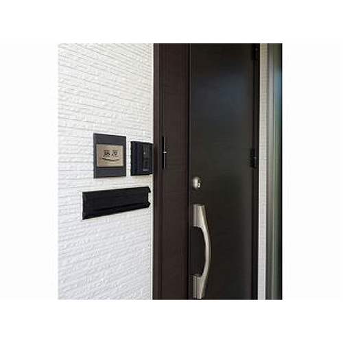 真っ白な外壁・ダークブラウンのドア、そして表札とコントラストのはっきりとした色彩でまとめられ、とてもクールな印象になっていらっしゃいます。きっとどなたがご訪問されても「かっこいい」の賛辞を得られると思いますよ!