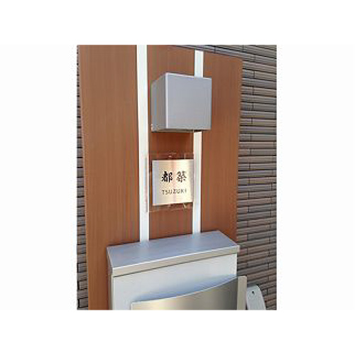 温もりのある外壁にアクリルの光沢感があるクレールを飾っていただき、シャープなエントランスになっていらっしゃいますね。