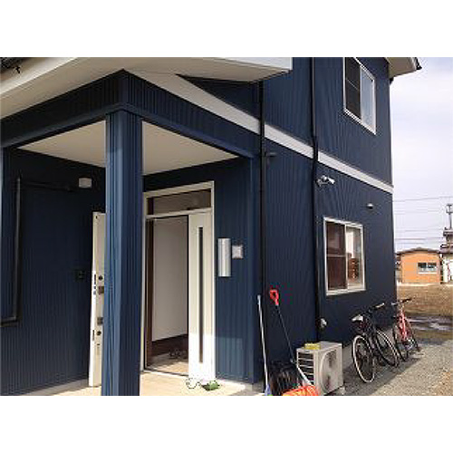ブルーと白を基調とした外観の中に白いアクリルとステンレスの表札が溶け込んでいますね。