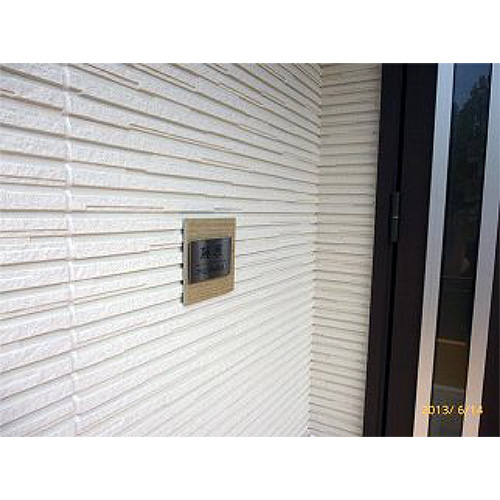 タイルとステンレスの表札を選ばれたことによって、柔らかい中にもどこかシックな感じにまとまっていて、一体感のある玄関です。