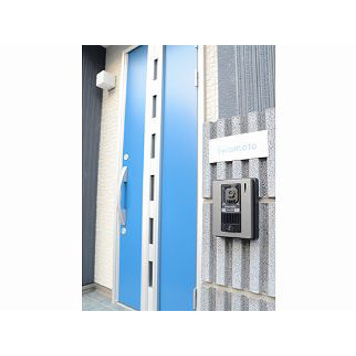 玄関扉が印象的な家なので、文字の色を合わせました。