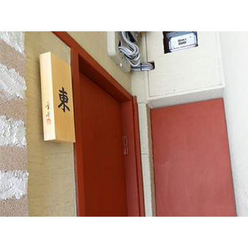 玄関というか、勝手口のところにひっかける釘プラス元の表札を固定していたプラスチック板へボンドで接着しました。