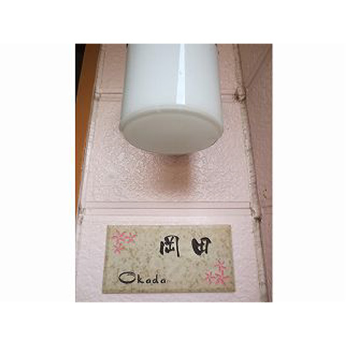 表札のピンクの差し色が、壁との相性がとても良くて素敵ですね!かわいらしい雰囲気がとても出ています。