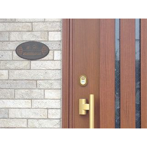 新築自宅の郵便ポスト柱の表札に続き、玄関入口の表札もハンコヤドットコムさんんでお願いしました。