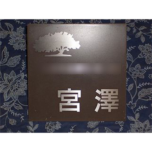 美しい木目にシンプルなタックプレート表札が映えて、とても素敵なお仕上がりですね。木の模様のワンポイントも素敵なアクセントになっていて、全体的にスマートな印象です。