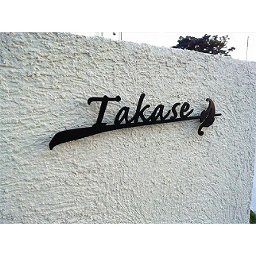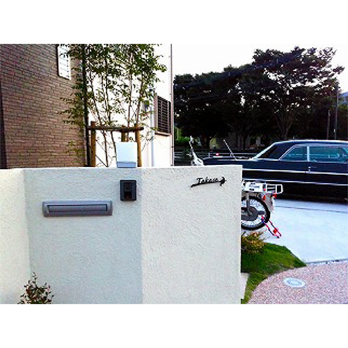 シンプルな白い壁面にアイアン風サインがアクセントになっていて、とってもお洒落で品があります。取り付けも一度でできたとのこと、さすがです。