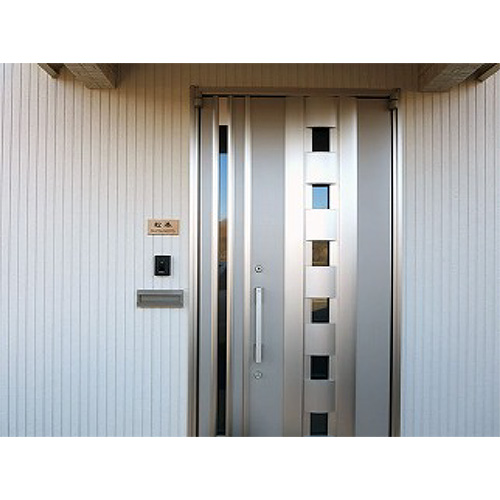 全体的に白で統一されたシンプルなエントランスに、温かみのある「表札クッキータイル」が優しく寄り添うように設置されており、とても素敵ですね。文字も新隷書体をお選びいただいているので、雰囲気にぴったりです。