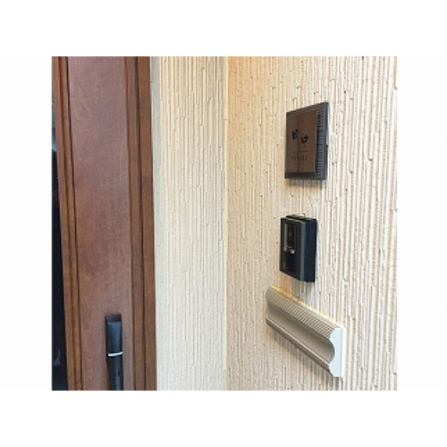 ステンレスとセラミックタイルのダブルレイヤーにより、シンプルながらも豊かな表情を生み出す「表札 Stage(ステージ)」が、白い外壁にすっきりと合っていて、とてもハイセンスなお仕上がりとなっていますね。